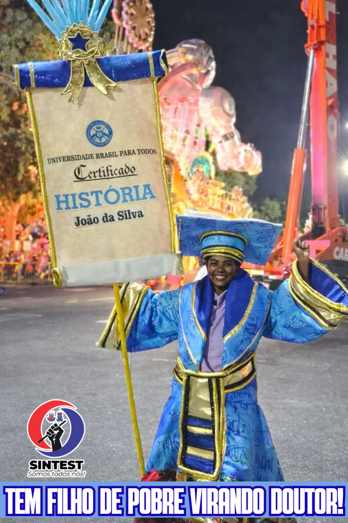 As dirigentes sindicais cetebistas Daiana Alcântara, Ivanilda Brito e Joana Evangelista participaram do desfile do Grupo Especial do Rio de Janeiro pela escola de samba Acadêmicos de Niterói, que apresentou como enredo “Do alto do mulungu surge a esperança: Lula, o operário do Brasil”, contando a história do menino que sonhava do alto de um mulungu, tornou-se operário, líder sindical e presidente da República, em referência a Luiz Inácio Lula da Silva.